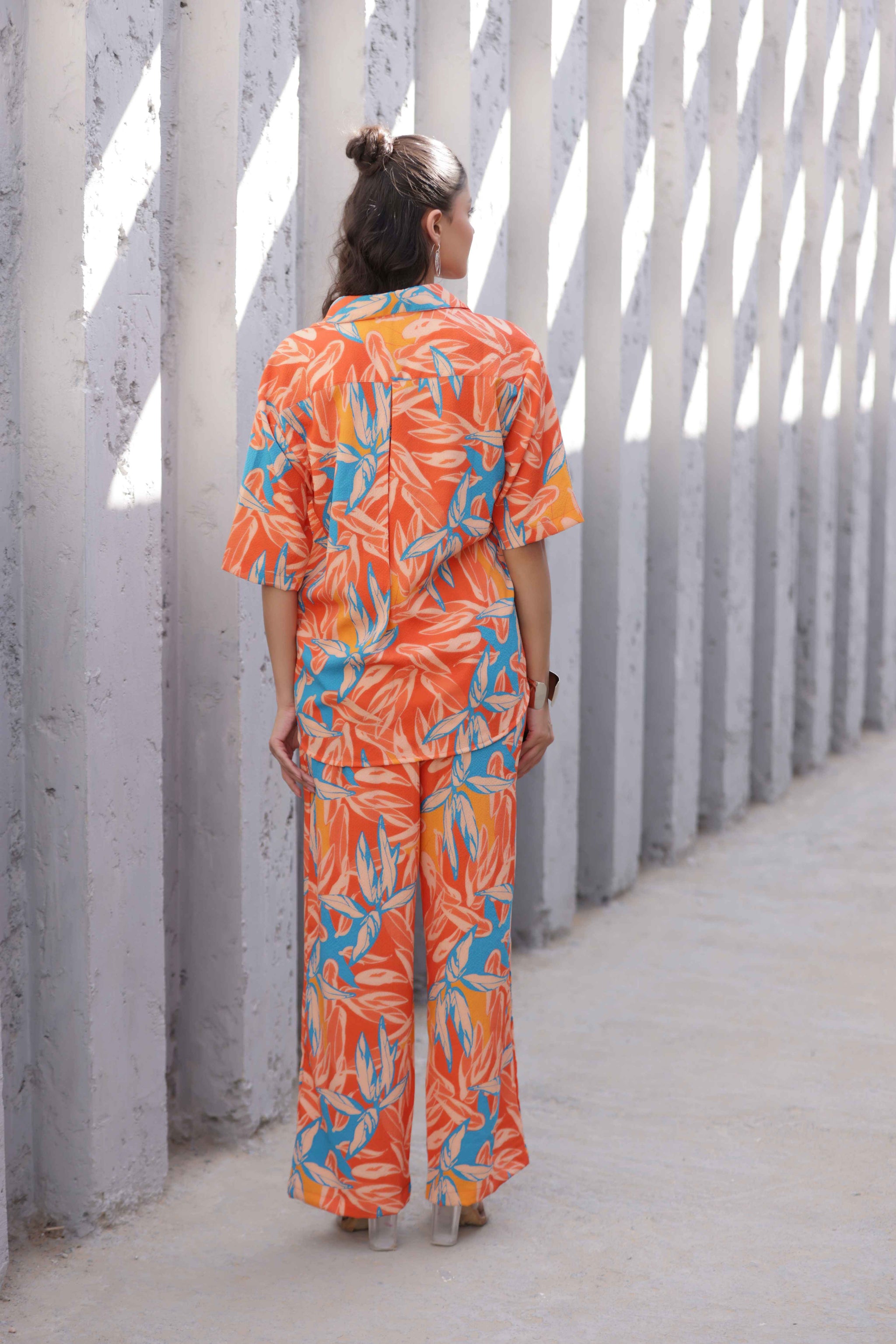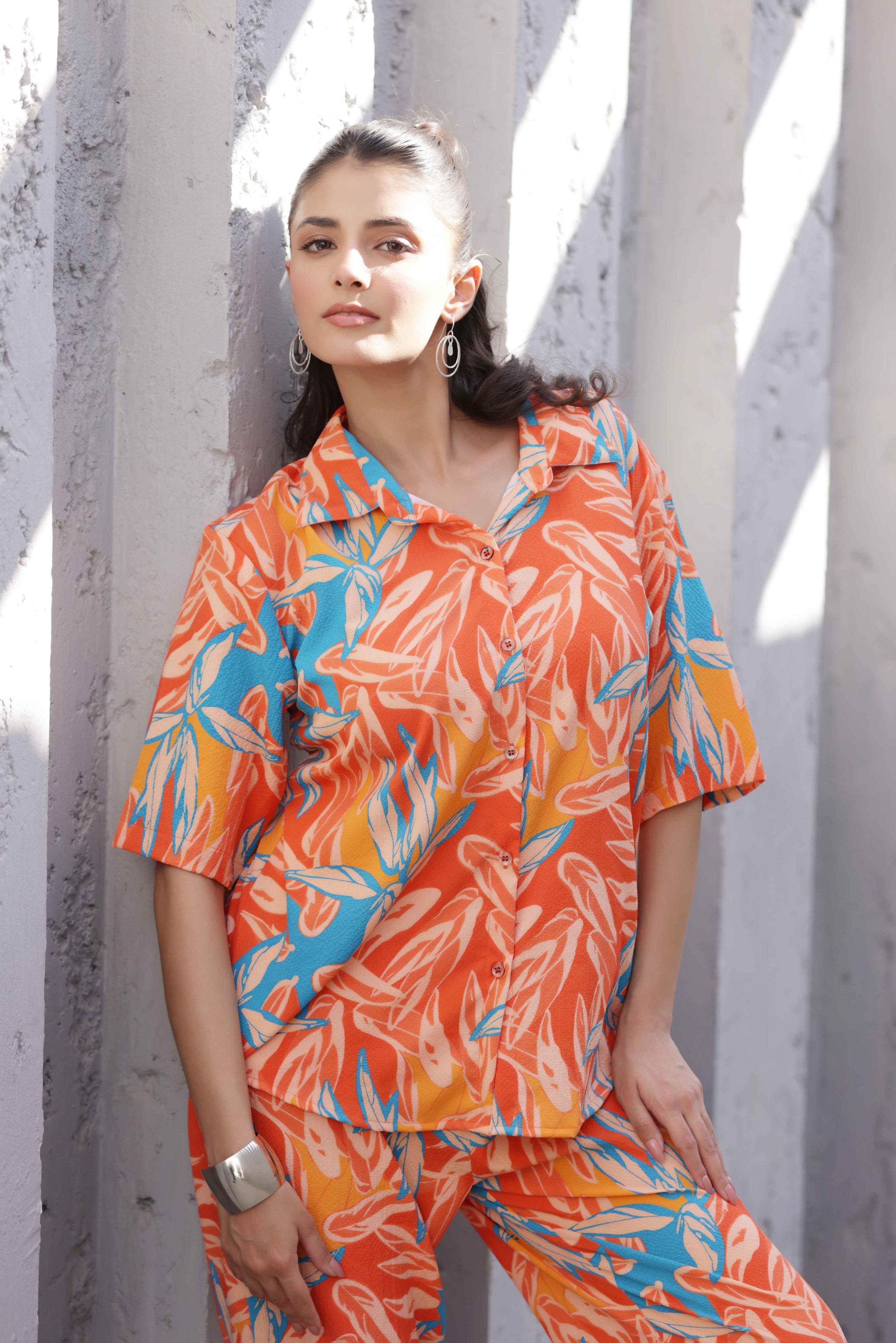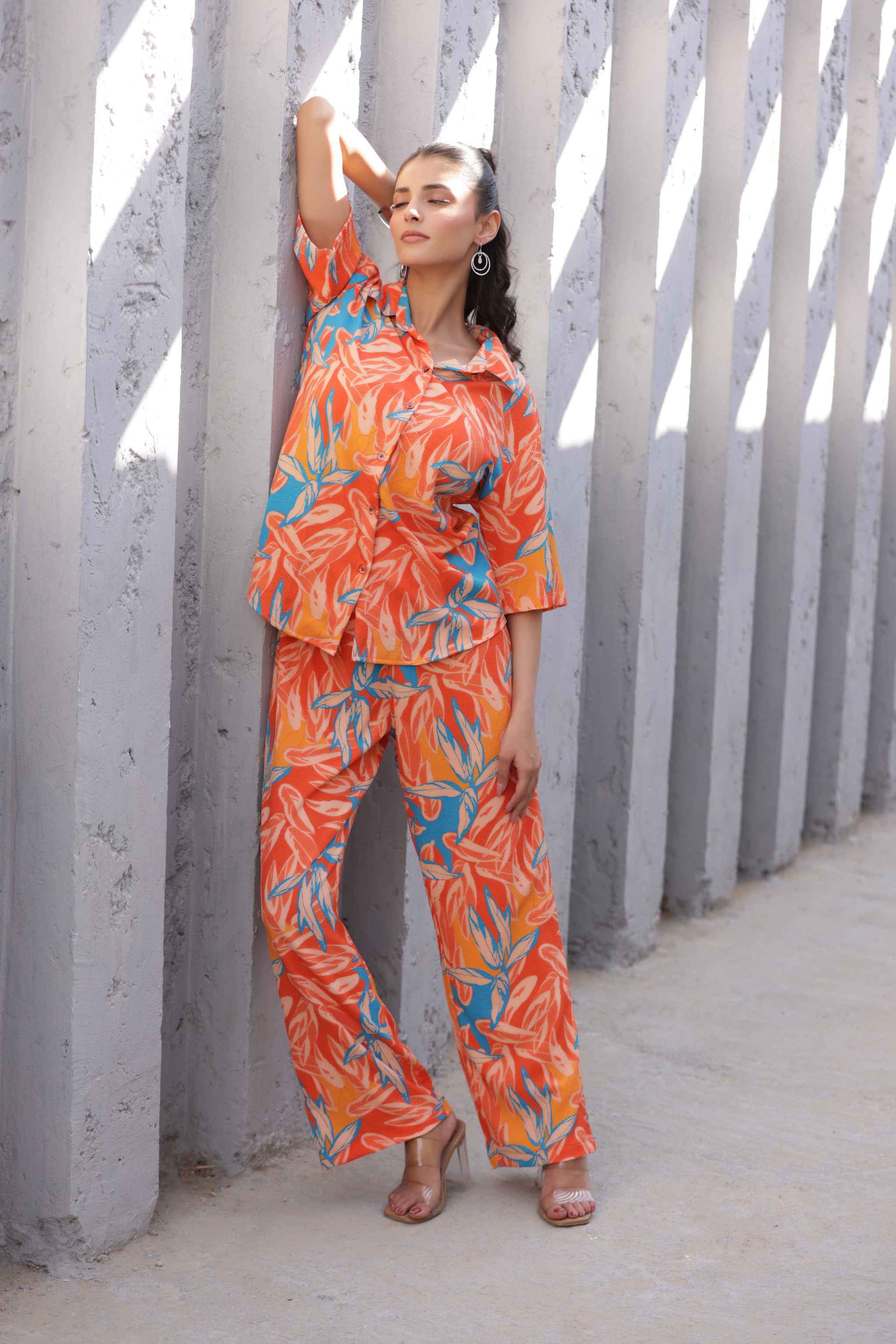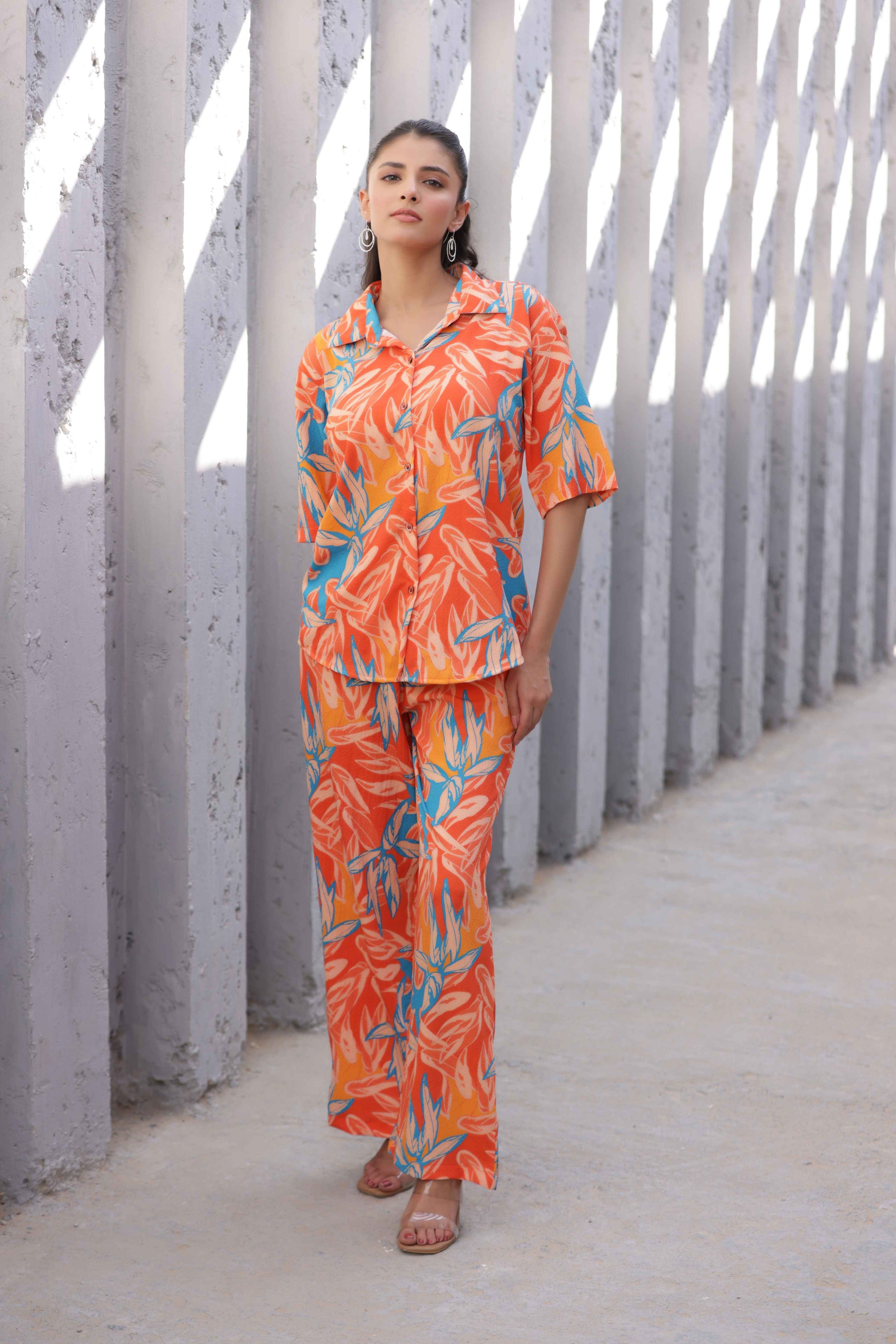 - Stay stylish and comfy in this vibrant orange cotton-polyester co-ord set, featuring chic half sleeves for a casual yet trendy look.