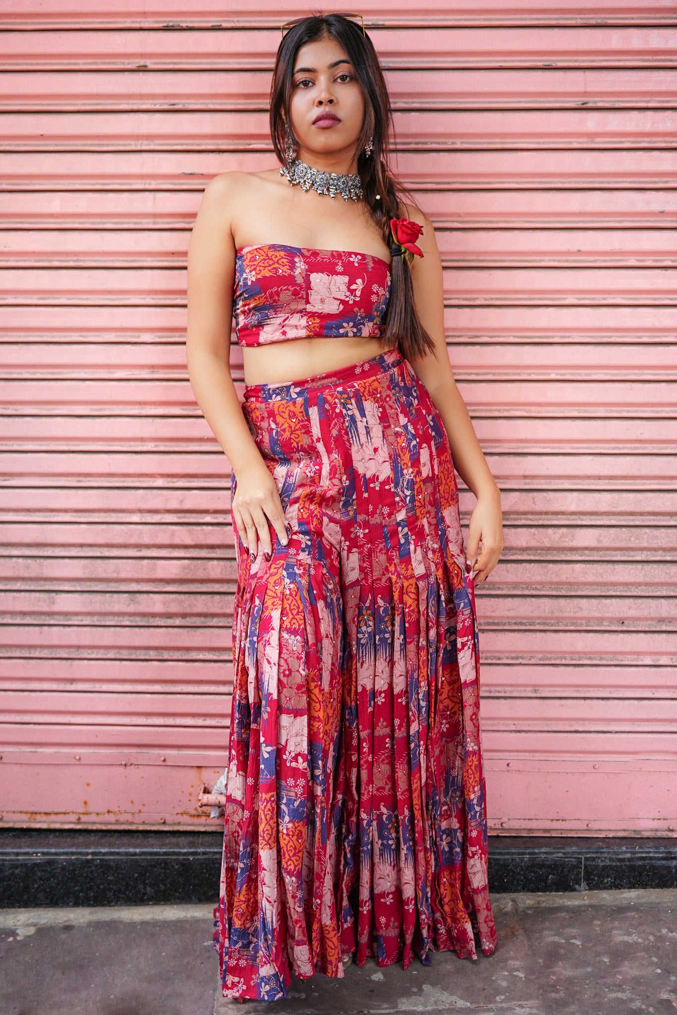 • Flow through the festive season in a dreamy Georgette top and pleated palazzo pants set with crepe lining, perfect for both Diwali sparkle and wedding elegance.