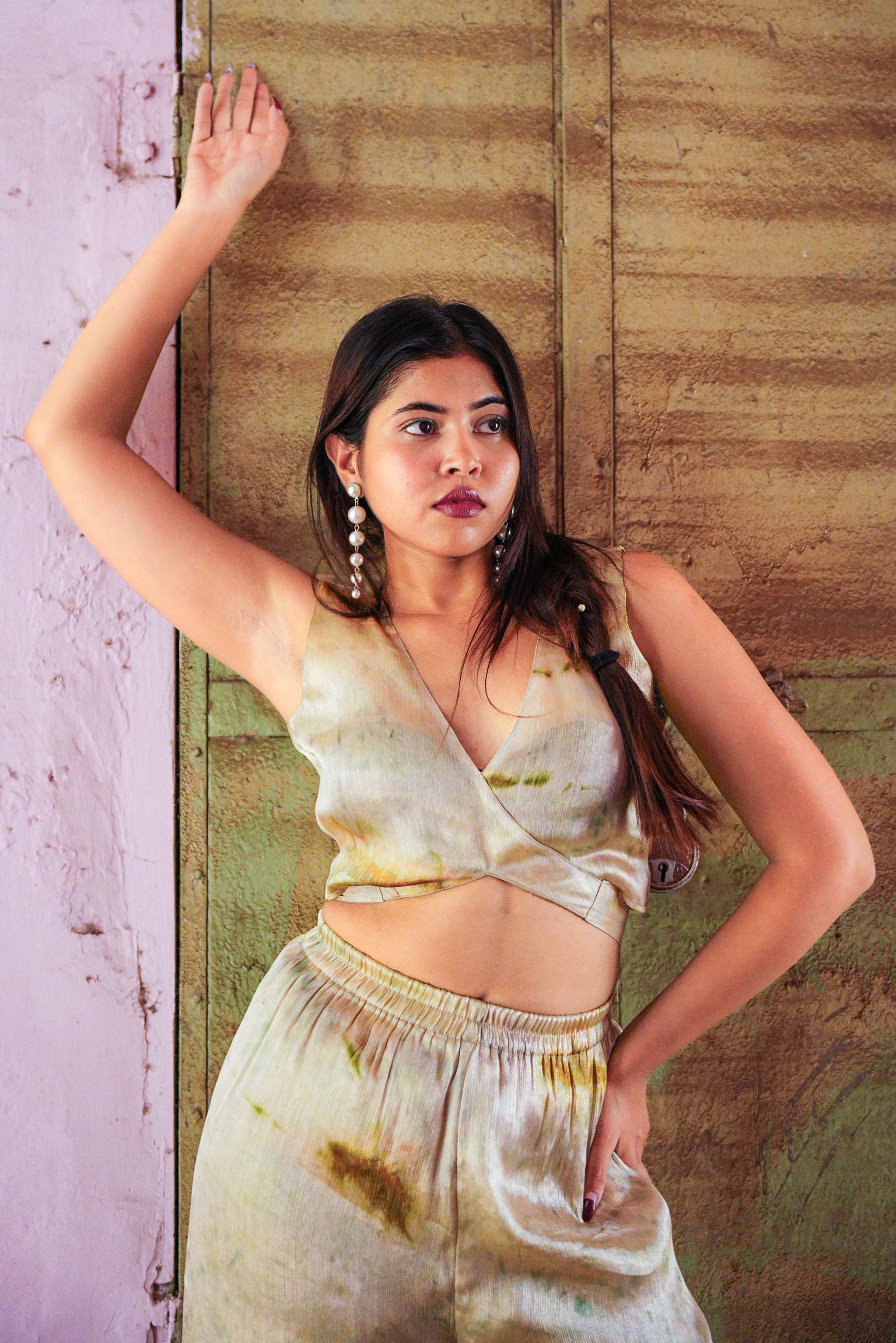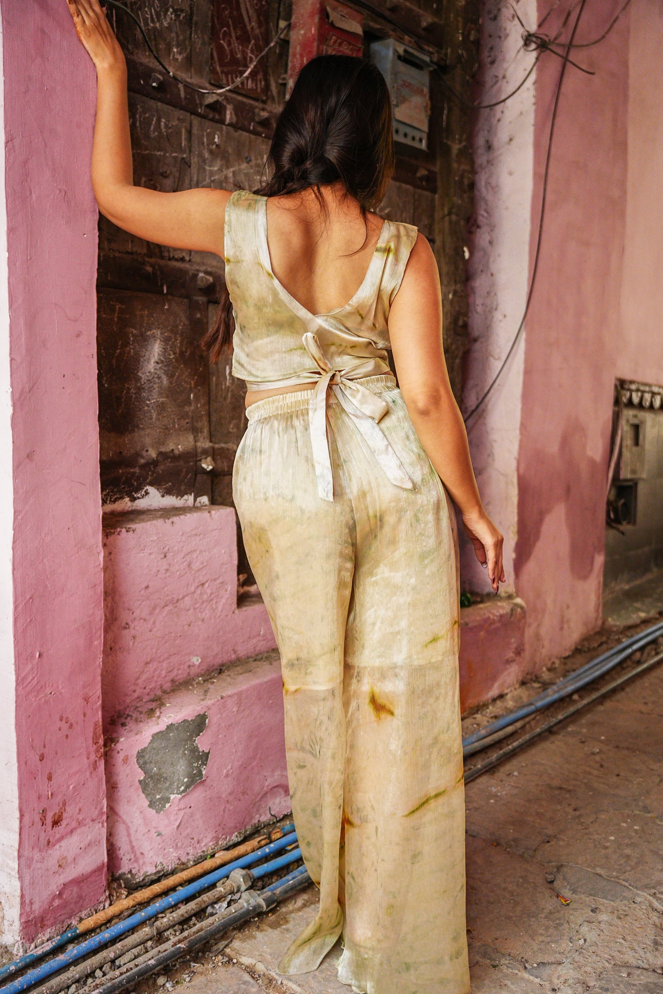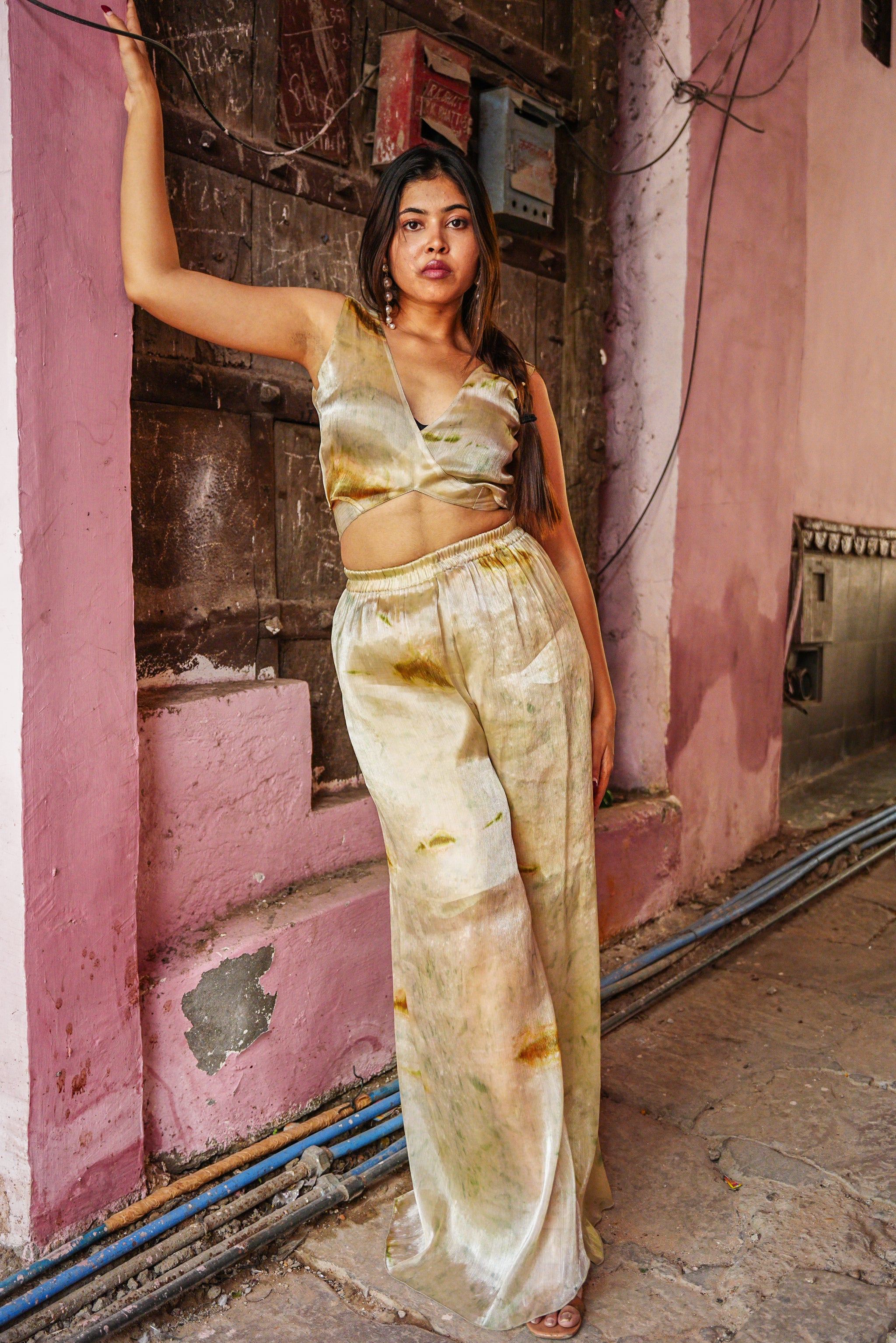 • Step into wedding season with effortless grace in this sleeveless Viscose Chinon co-ord set, designed to shine with timeless elegance.
